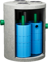 Für größere Anschlussflächen können 2 bis 5 Hydrosysteme 1.000 in einem Schachtbauwerk kombiniert werden.
