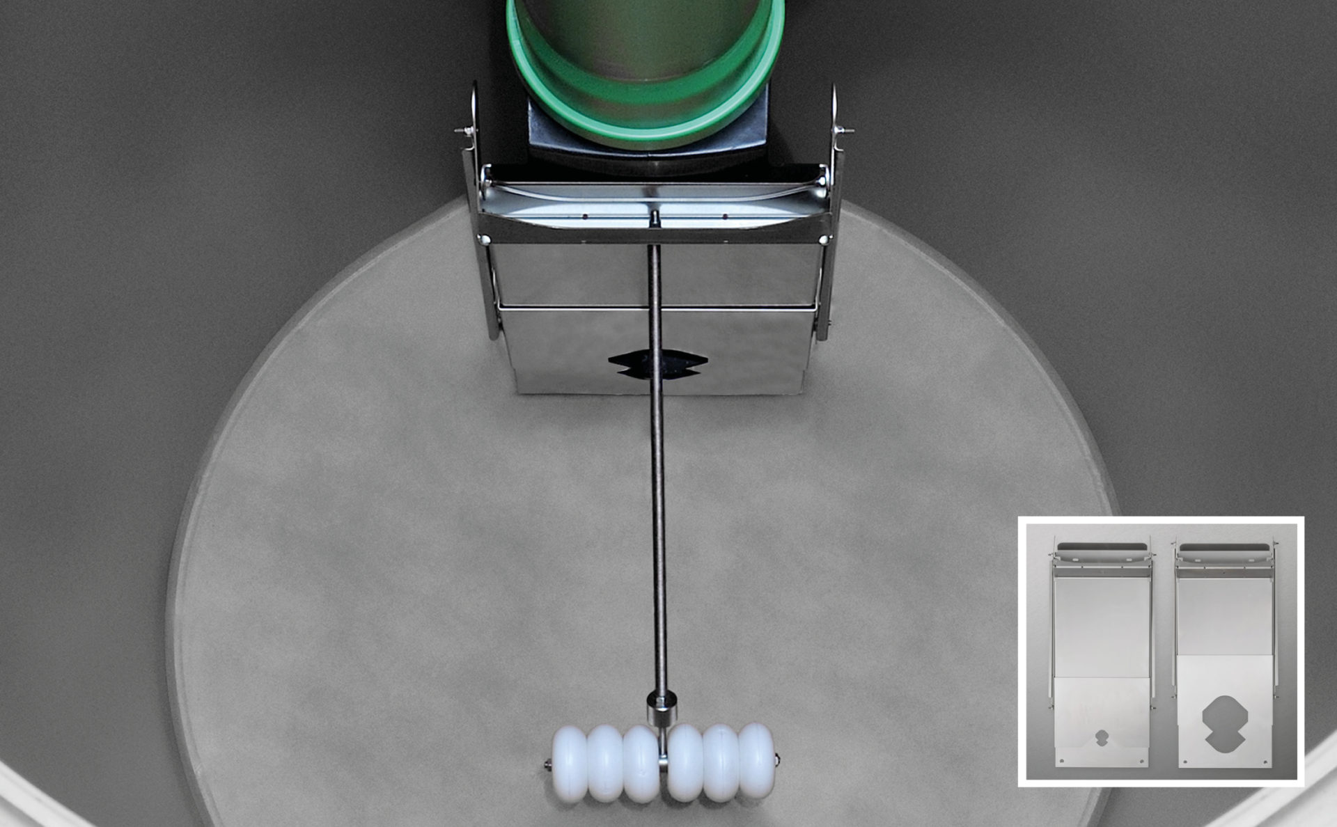 Vorrichtung für den Einbau im Retentionsspeicher. Die 3P Retentionsdrossel Inox sorgt für einen regelmäßigen, vorher definierten Abfluss. Die Drosselmenge ist einstellbar