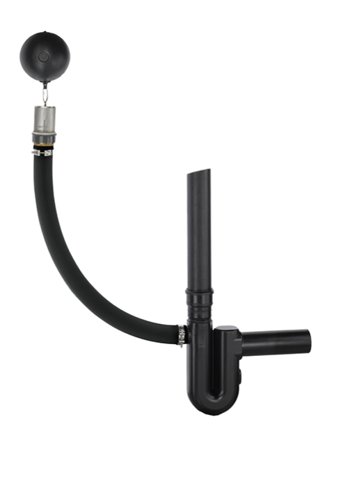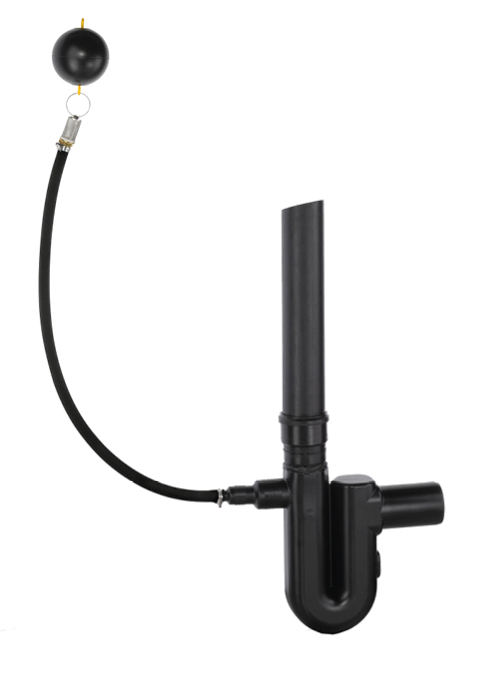 Vorteil: Retentionsdrossel und Überlaufsiphon in einem Teil, der sich dem Wasserstand anpasst. Durch den flexiblen Schlauch passt sich die Drossel dem Wasserstand an.