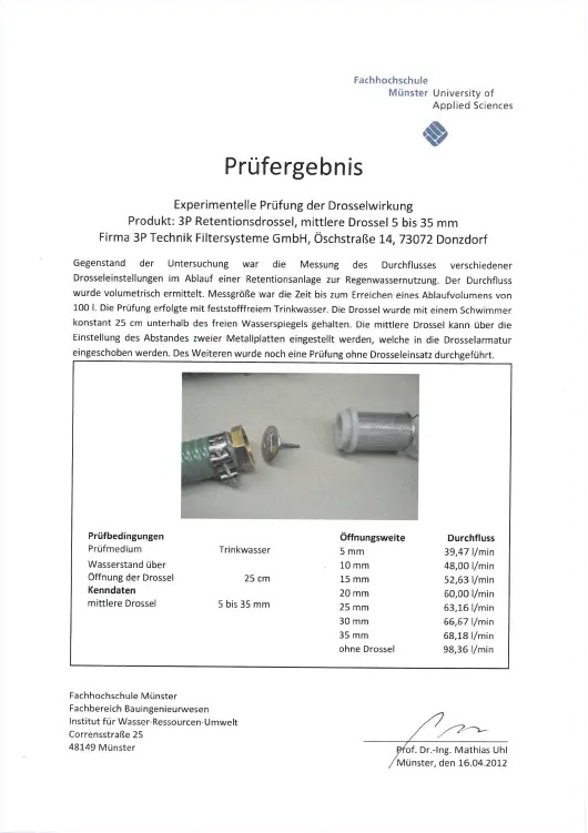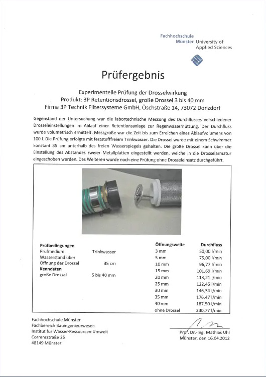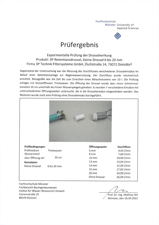Die Retentionsdrossel sorgt für einen regelmäßigen, vorher definierten Abfluss.