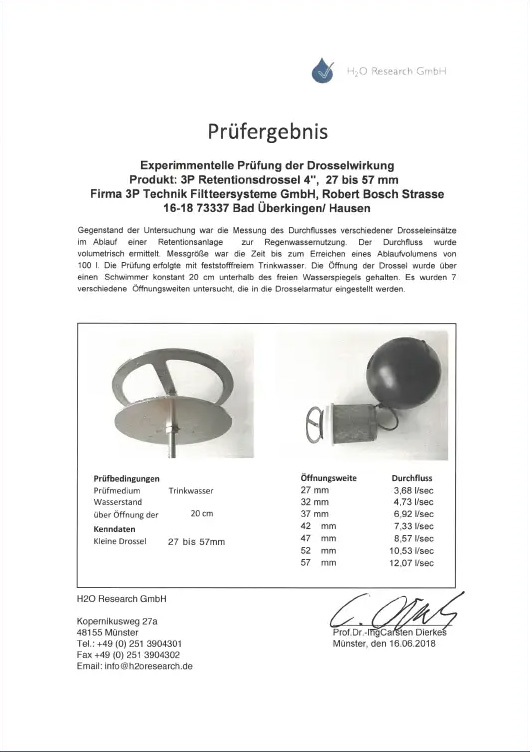 3P Retentionsdrossel 4″ mit Überlaufsiphon