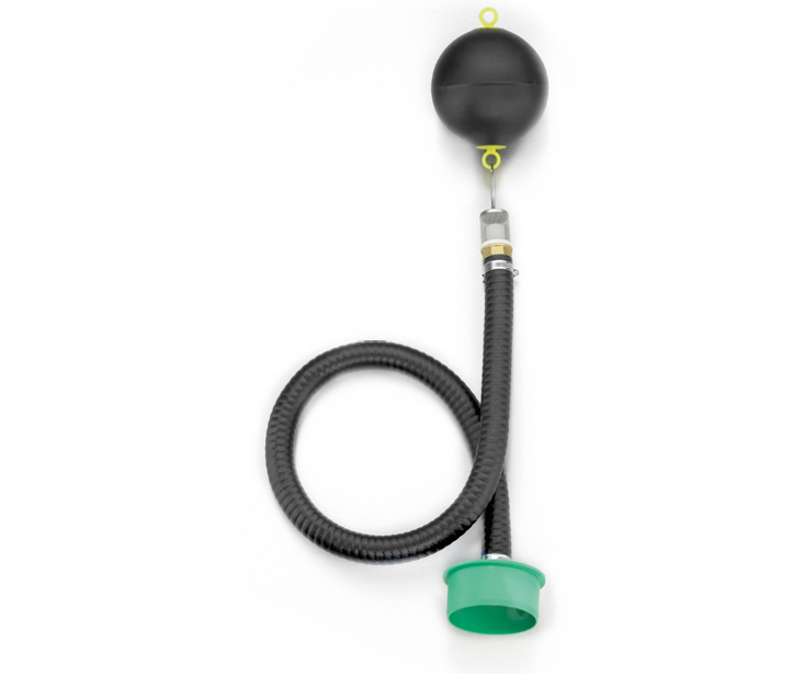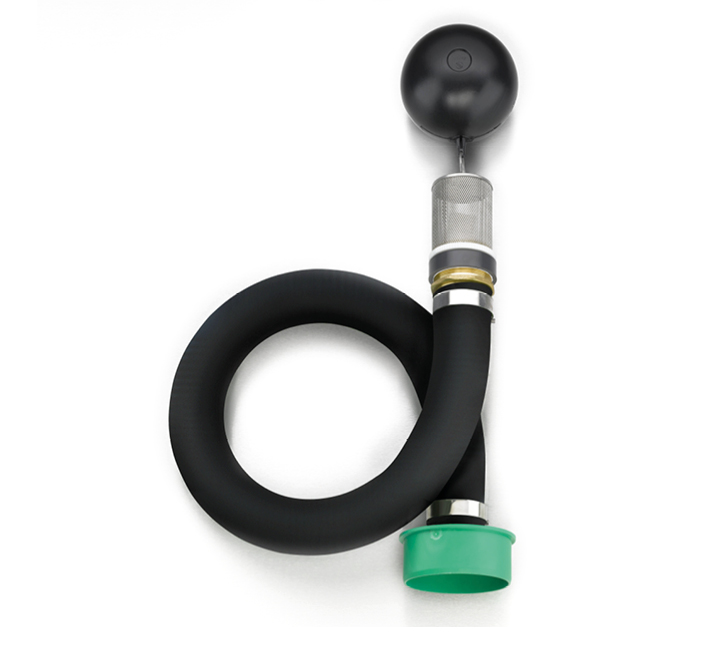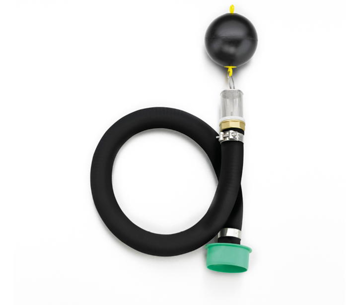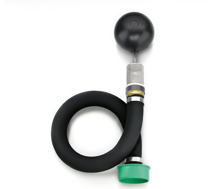 3P Schwimmdrossel für Retentionsspeicher. Aufgebaut wie eine schwimmende Entnahme mit Schwimmkugel und Filterkorb. Das Drosselelement befindet sich zwischen Filterkorb und Schlauchtülle. Die Einstellung der Drosselmenge erfolgt an dem Drosselelement.