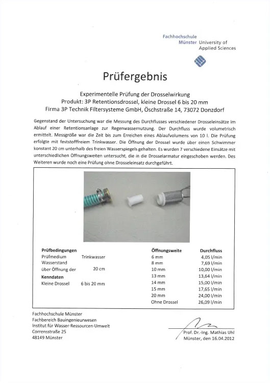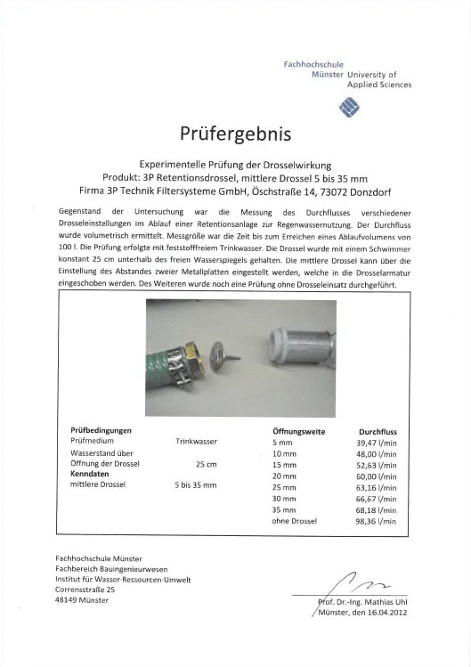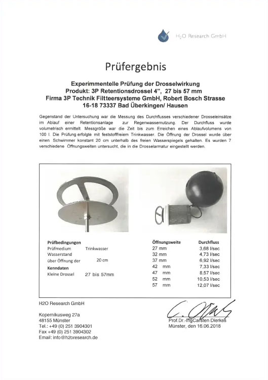 Mit diesen Drosseln wird der Ablauf durch Regenereignisse gedrosselt um den Kanal oder ein Oberflächengewässer vor zu hohen Zuflüssen zu schützen.