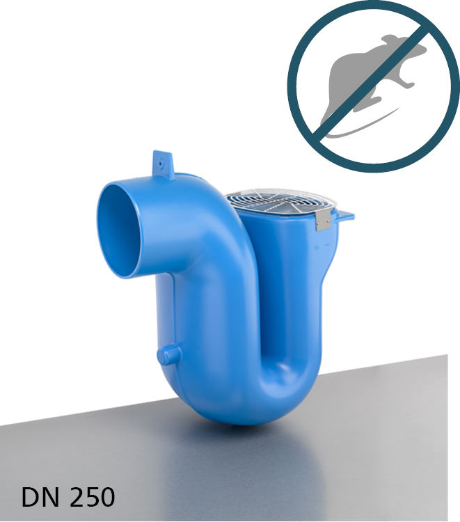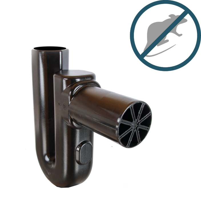 Geruchsverschluss zum Abwasserkanal mit integrierter Nagetiersperre aus Kunststoff.
