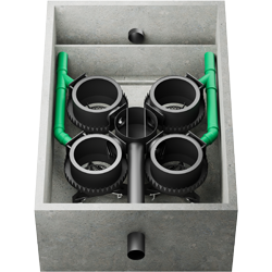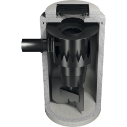 Die Feststoffe werden im Schlammfang gesammelt, der durch Strömungsbrecher und ein Gitterrost hydraulisch vom Behandlungsraum getrennt ist, so dass es zu keiner Remobilisierung kommt.