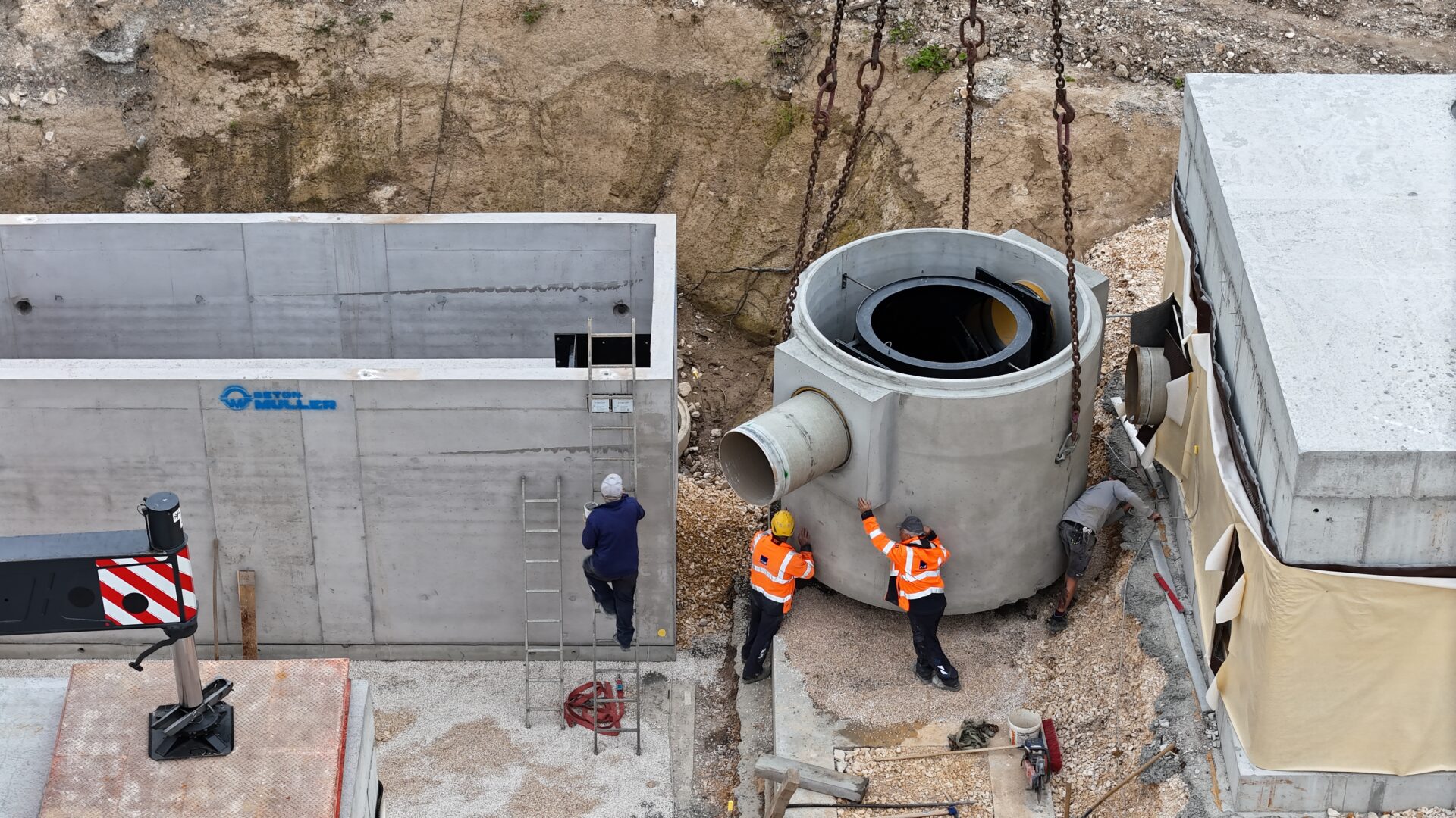 Die Anlagen wurden vormontiert in Betonschächten des Betonwerks Müller (Achern) geliefert und von der Firma Ritter und Deeg direkt in vorbereitete Baugruben eingesetzt. So konnte der Tiefbau effizient und zügig umgesetzt werden.